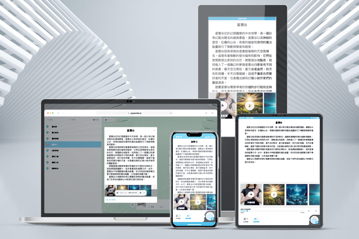LBS定位向量地圖服務、APP設計與開發、後台管理系統、雲端伺服器建置、網站設計與RWD建置、擴增實境(AR)、互動遊戲開發、數位媒體製作、行動支付、以及硬體KIOSK,Popworld依照客戶的需求開發量身訂製,提供最符合需求的服務。
